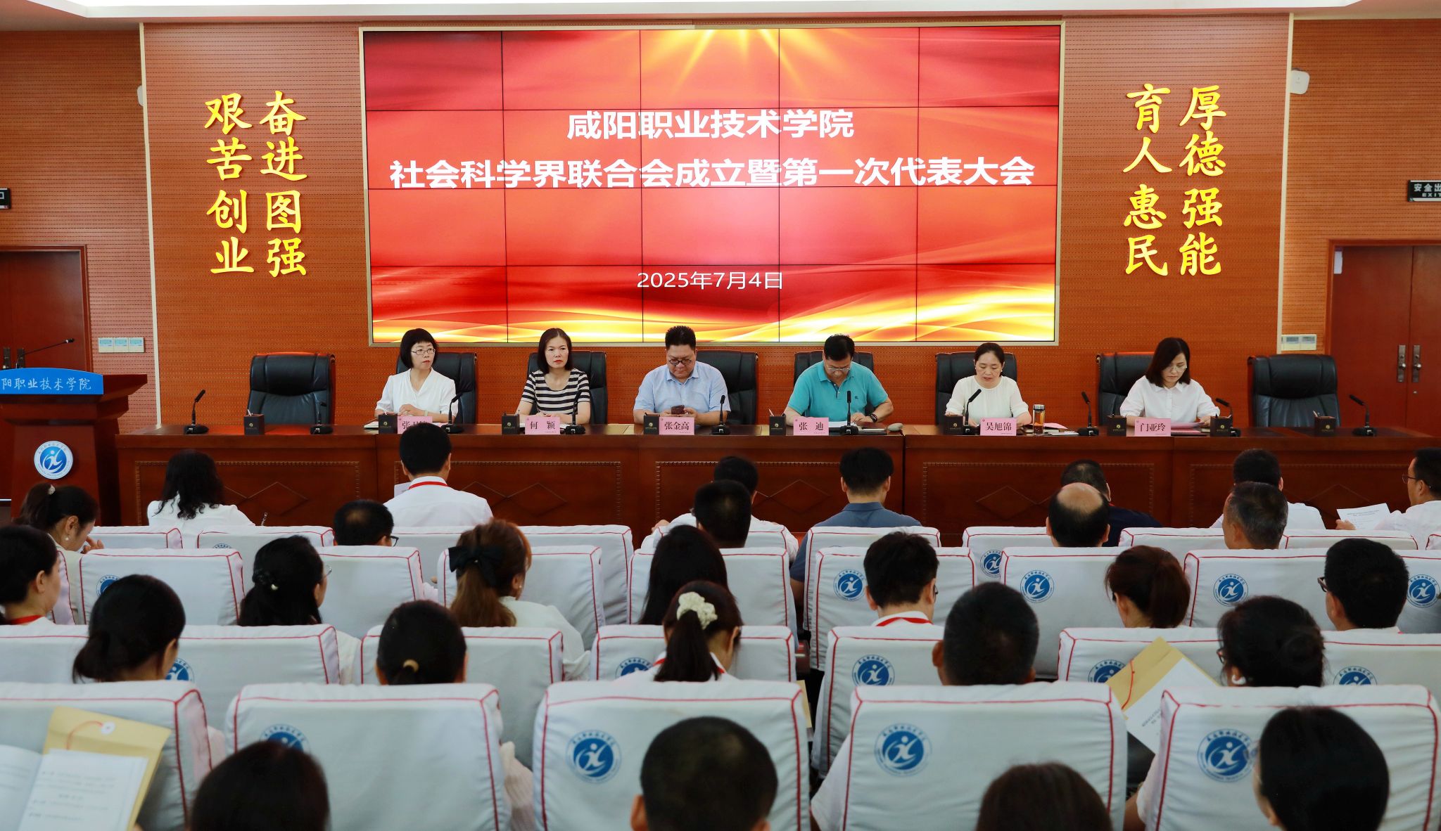 7月4日,咸阳职院社会科学界联合会成立暨第一次代表大会召开。陕西省社科联社会组织管理部部长张金高、咸阳职院党委书记张迪、中共咸阳市委讲师团团长(咸阳市社会科学界联合会服务中心主任)何颖、咸阳职院副院长吴旭锦及教师代表齐聚院务楼201报告厅,共同见证学院社科联成立,共谋社会科学事业发展大计。
