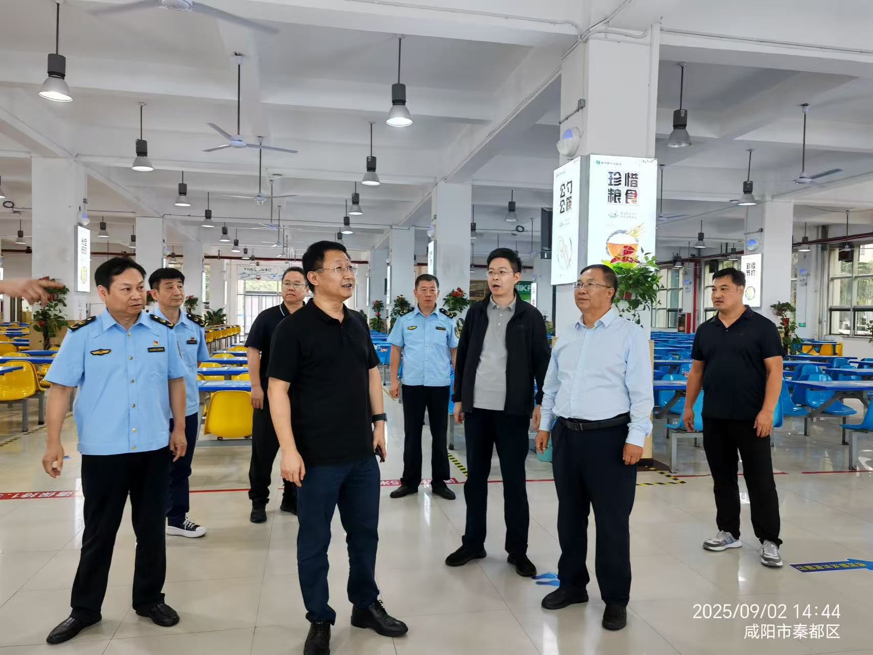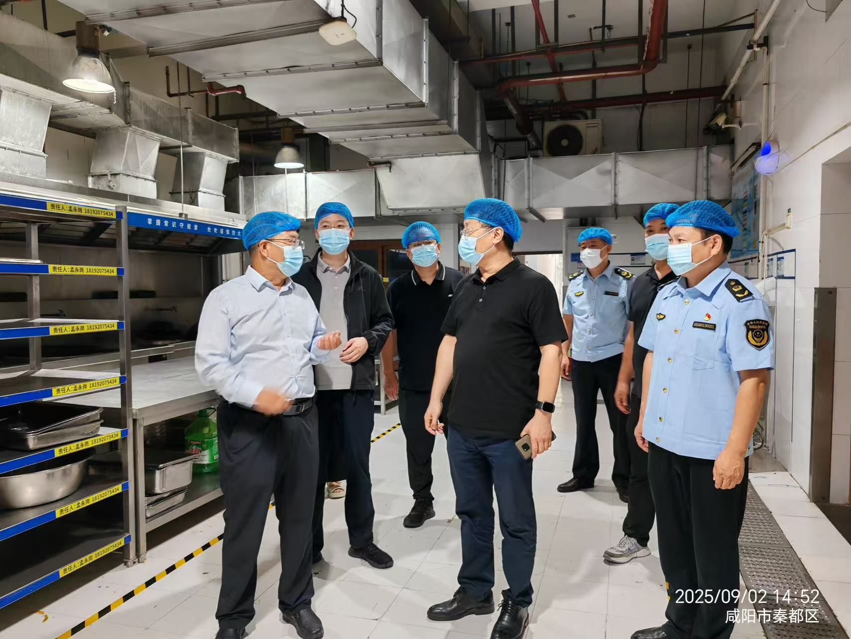 9月2日,沣西新城党委委员、纪委书记俎茂宏,沣西新城市场监督管理局局长皮利海一行到咸阳职院,专项检查指导学生食堂秋季开学准备及食品安全工作。学院党委副书记赵维,后勤处负责人全程陪同检查。