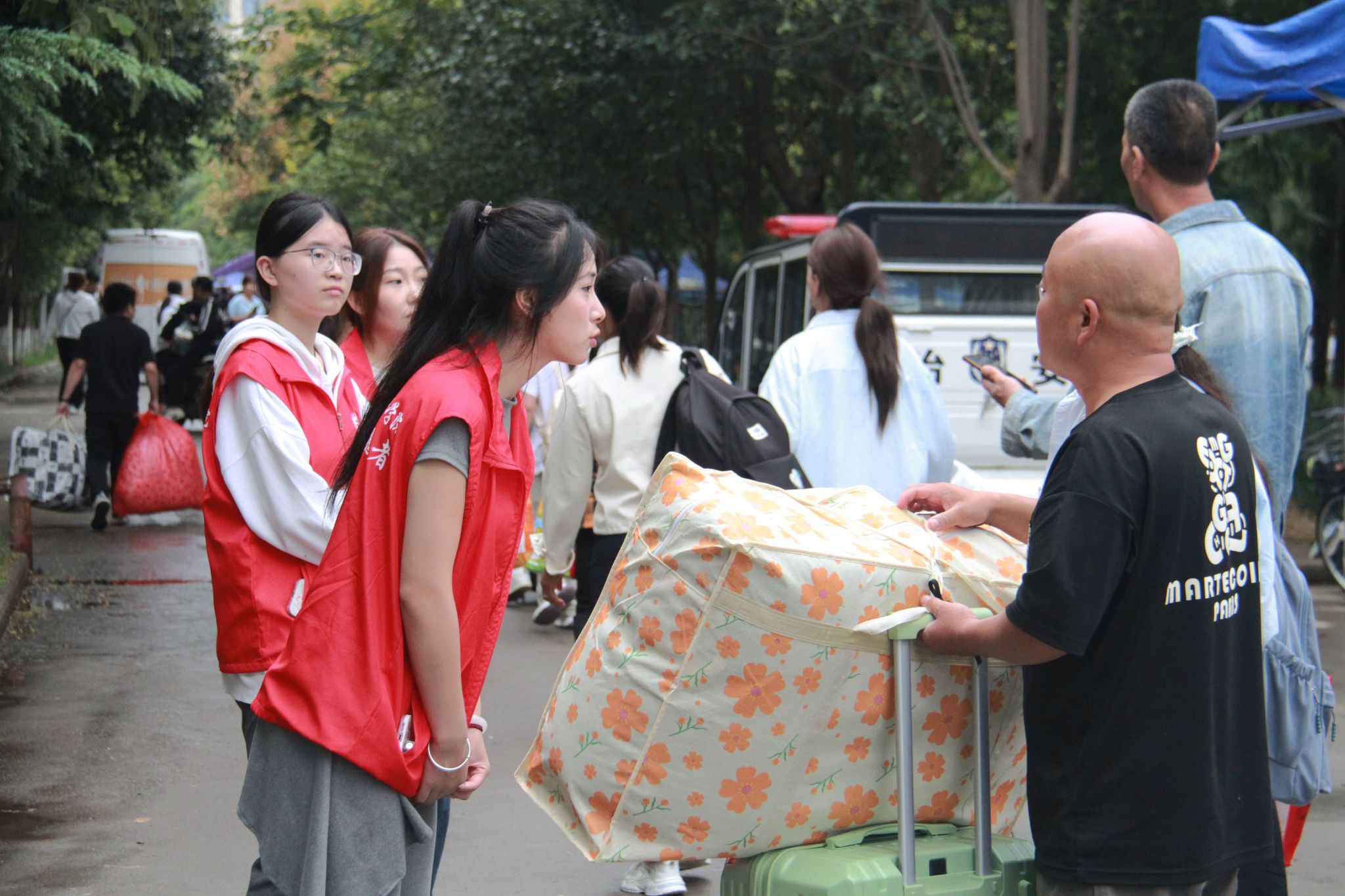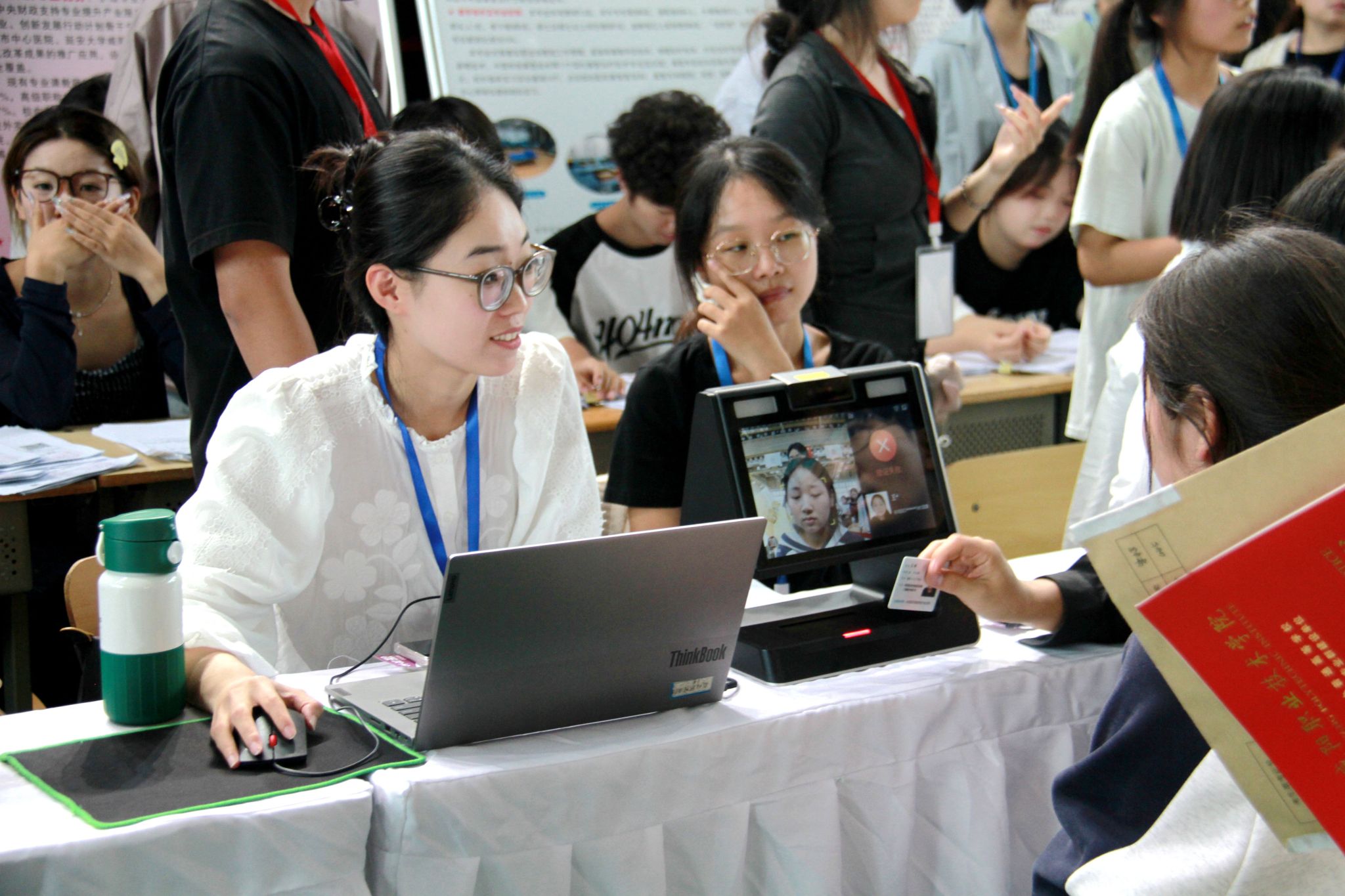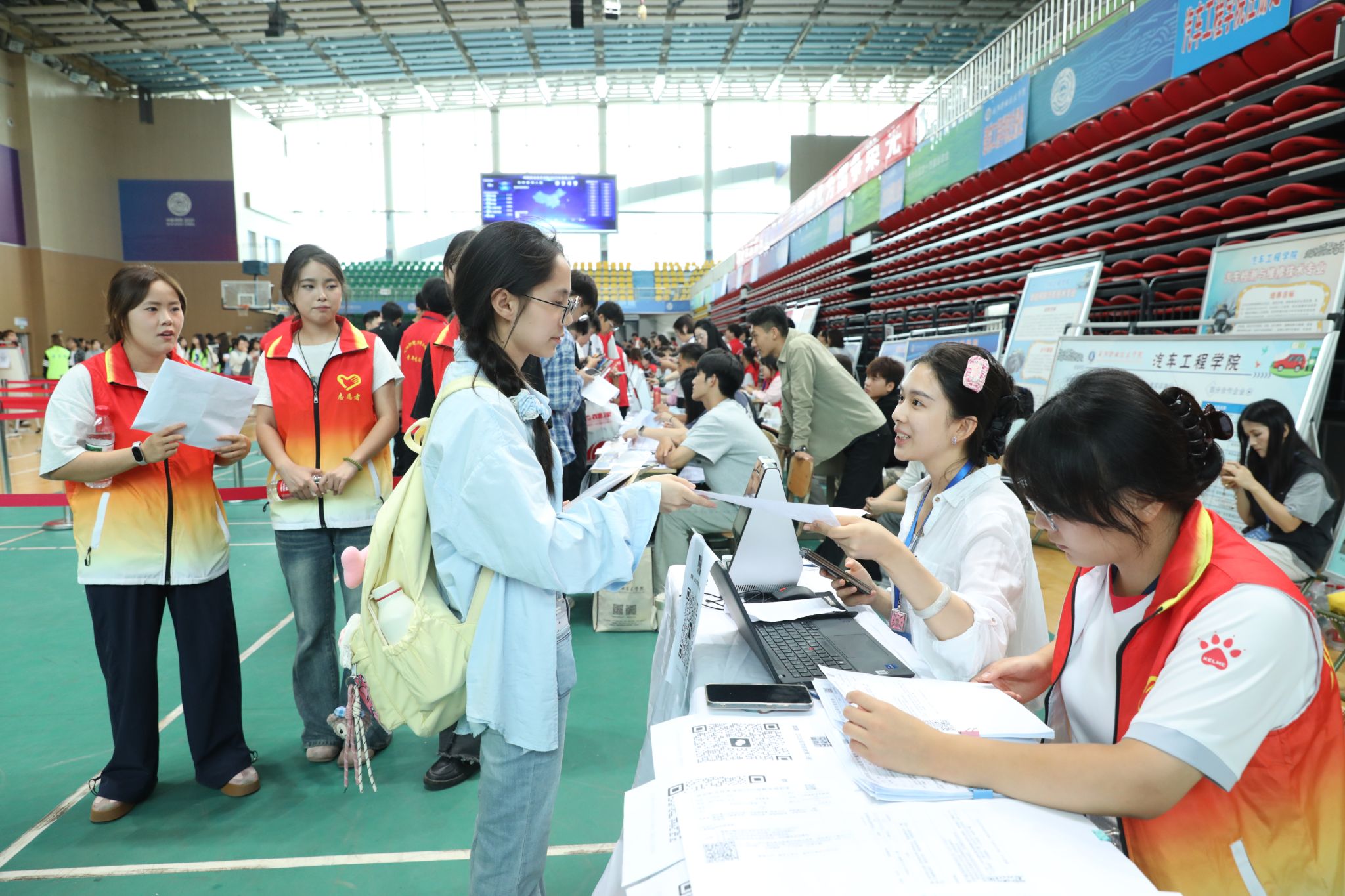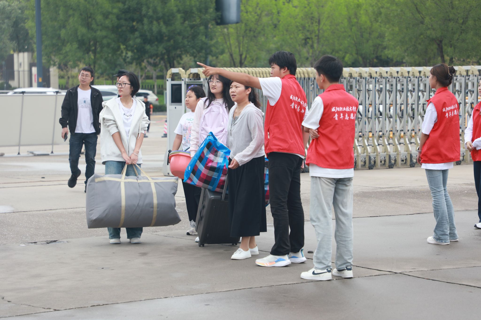 报到现场,各二级学院分别设立报到点,师生、志愿者们热情引导新生办理入学手续,通过手机客户端迎新模块了解报到流程、完成线上缴费、查询宿舍安排,享受快捷报到,实现“掌上迎新”。学院同步开通“绿色通道”,为家庭经济困难学生提供精准帮扶,传递人文关怀和教育温度。从火车站、高铁站开往校园的10辆迎新专车,实现了“从站点到宿舍”的无缝衔接。数百名“红马甲”志愿者活跃在校园各个角落,提供引导、咨询、帮扶等贴心服务,让新生与家长倍感温暖。