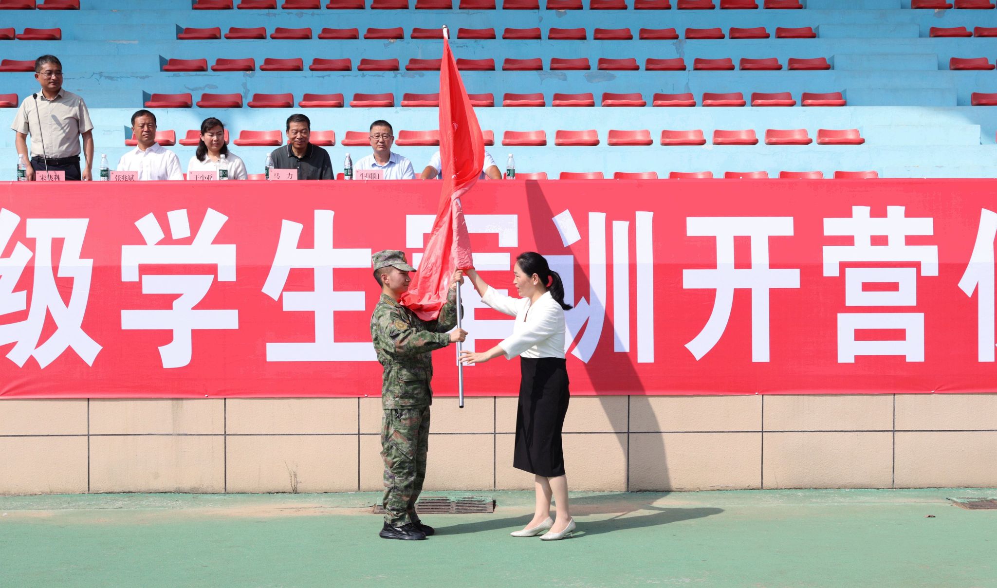 吴旭锦向军训团授团旗,宣布beat365英国官网网站2025级新生军训正式开始。