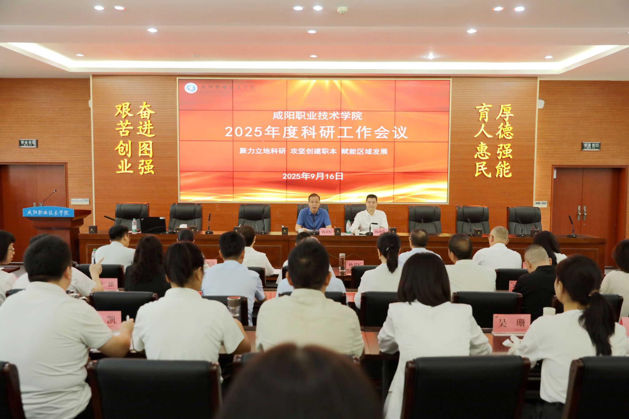9月16日,咸阳职院召开2025年度科研工作会议。学院院长杨卫军,学院党委副书记、工会主席孙彦彬,党委副书记赵维,副院长芮红亚、杨新宇、吴旭锦,纪委书记王宇文,各二级学院院长、副院长、全体教授、博士等200余人参加会议。