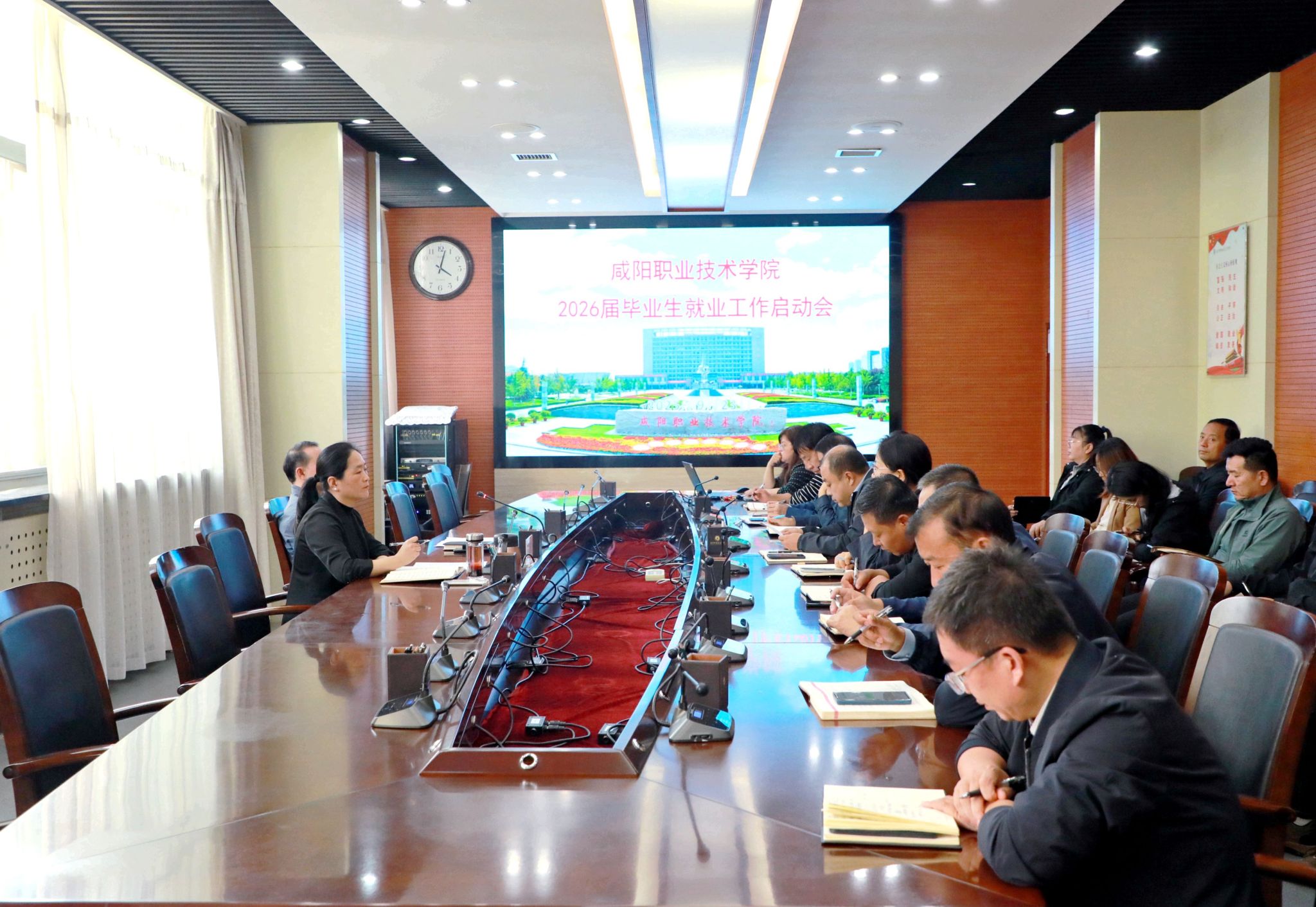 9月23日,咸阳职院召开2026届毕业生就业工作启动会,学院副院长吴旭锦,就业与校企合作处负责人,各二级学院党总支书记、副书记、学发办主任及就业与校企合作处相关人员参加会议。会议由就业与校企合作处负责人主持。