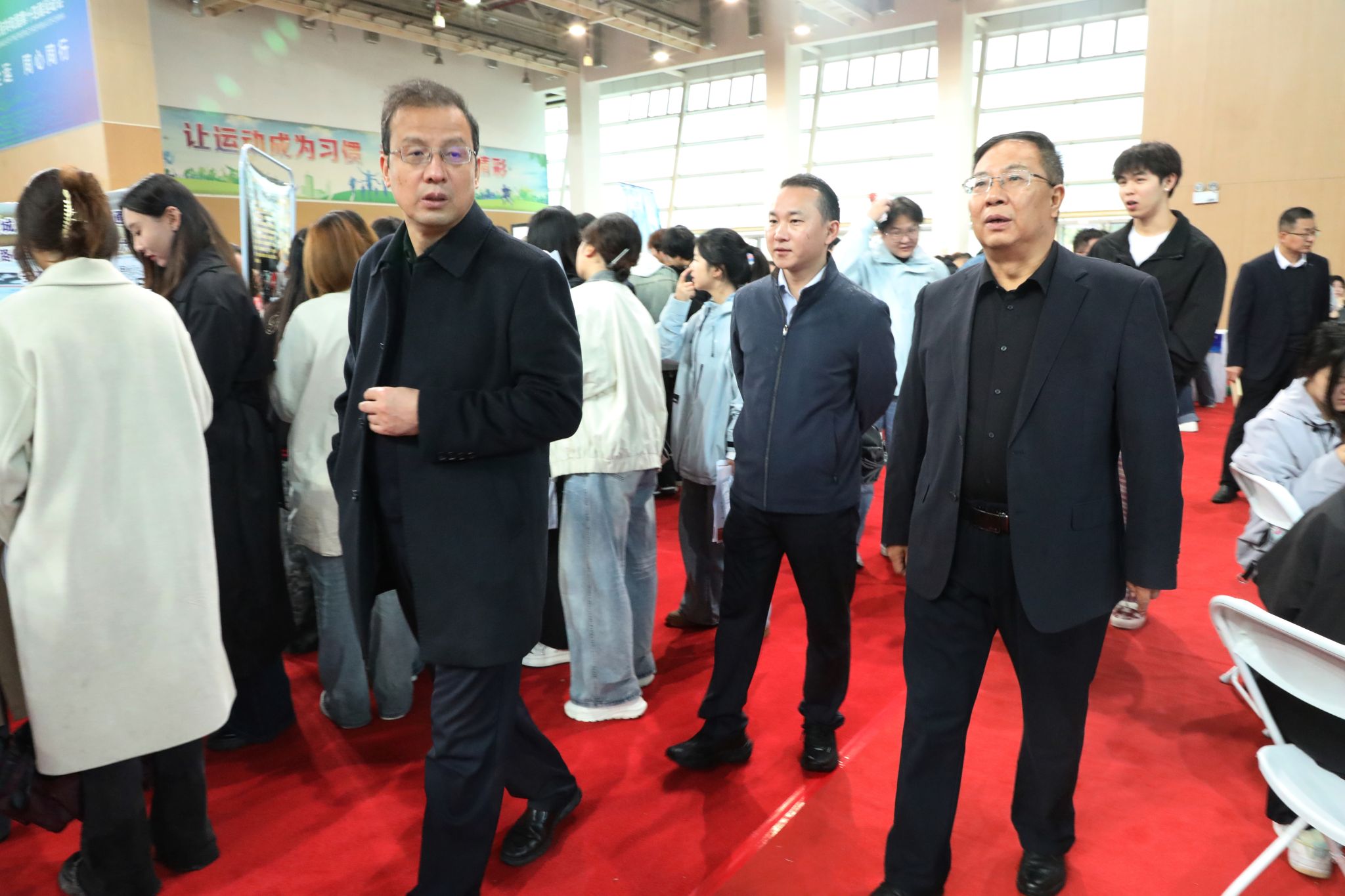 学院党委书记张迪、院长杨卫军、党委副书记赵维深入双选会现场指导,亲切慰问走访招聘企业,深入交谈了解用人单位的招聘需求、岗位设置、薪资待遇等情况,与毕业生亲切交流,了解同学们的个人规划和就业方向。