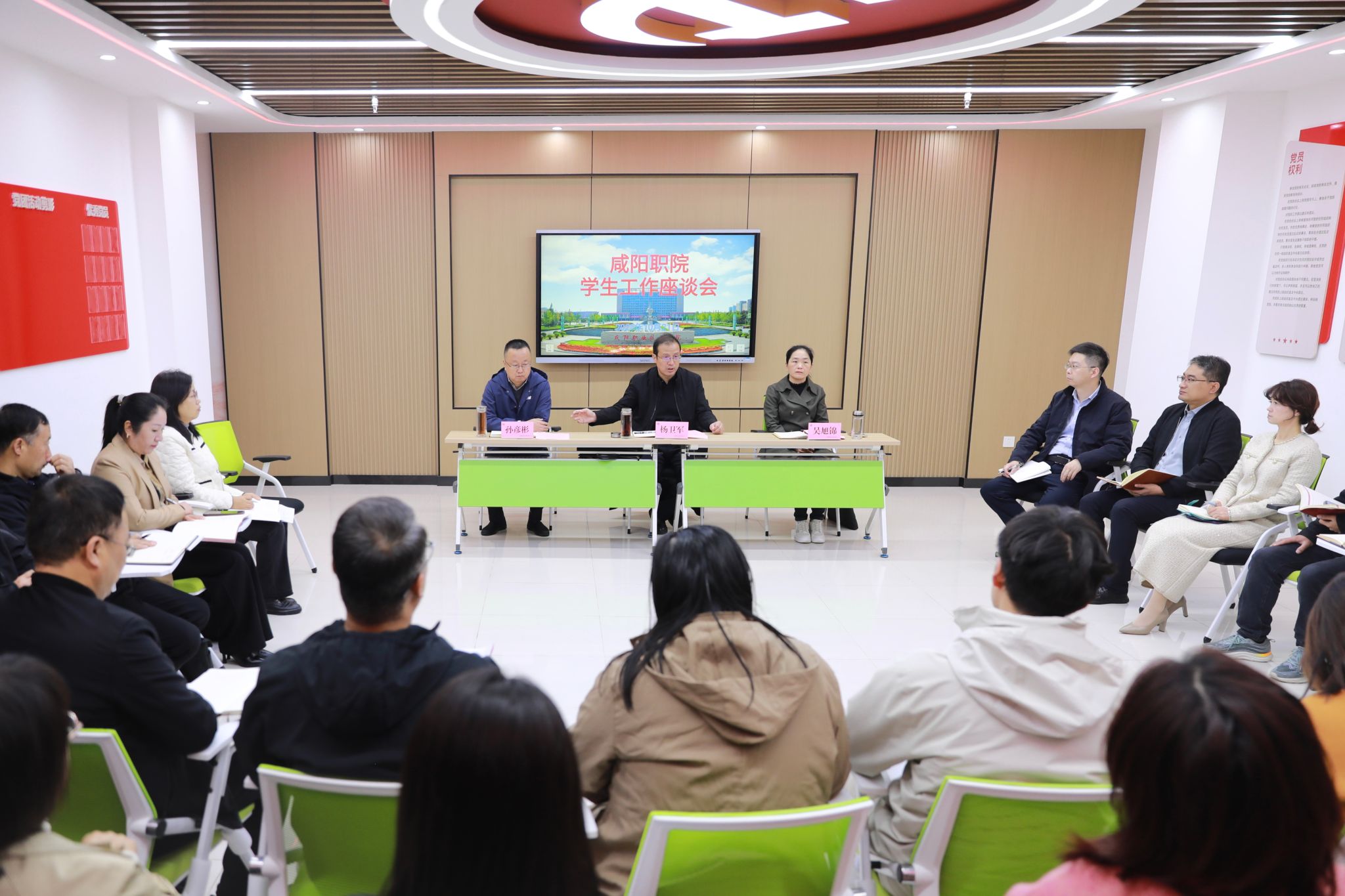 10月21日,为深入贯彻落实全省高校学生工作视频会议精神,系统谋划学生工作高质量发展路径,咸阳职院在“一站式”学生社区学生党团活动中心召开学生工作座谈会。学院院长杨卫军,党委副书记、工会主席孙彦彬,副院长吴旭锦参加会议,学生处、后勤处、团委等部门负责人,各二级学院学工干部及辅导员代表参会,围绕新时代学生工作的难点与突破点展开深入研讨。