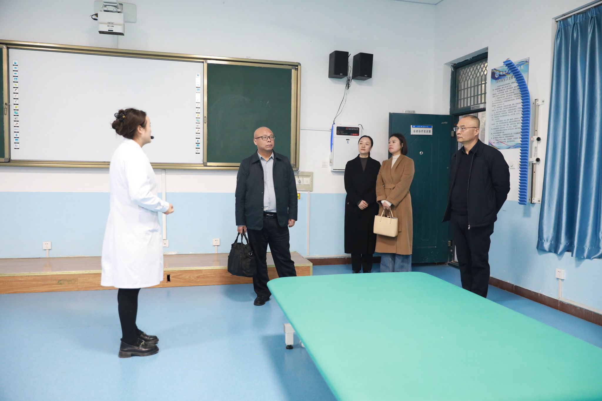 蒲国林一行参观考察了学院医学院实训室、体育馆游泳馆、学院附属幼儿园,并就所面临的问题与教务处、医学院进行对口交流。