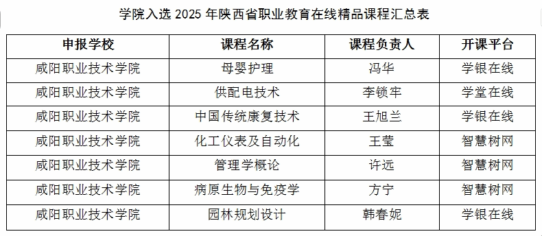 经专家评审、学院审议和校内公示等程序,学院共推荐8门课程参与省级认定。最终,7门课程成功获评为陕西省职业教育在线精品课程,入选数量和质量均实现新的突破。
