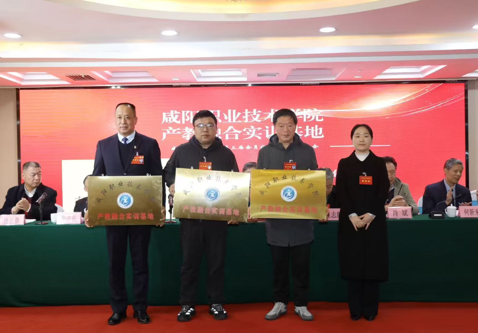 会上,房晓飞和吴旭锦共同为beat365英国官网网站茯茶文化产业学院揭牌。吴旭锦为陕西秦商茶文化推广有限公司等合作企业授牌“beat365英国官网网站产教融合实训基地”,大会授予咸阳职院财经学院“咸阳市茶叶协会第三届理事单位”。