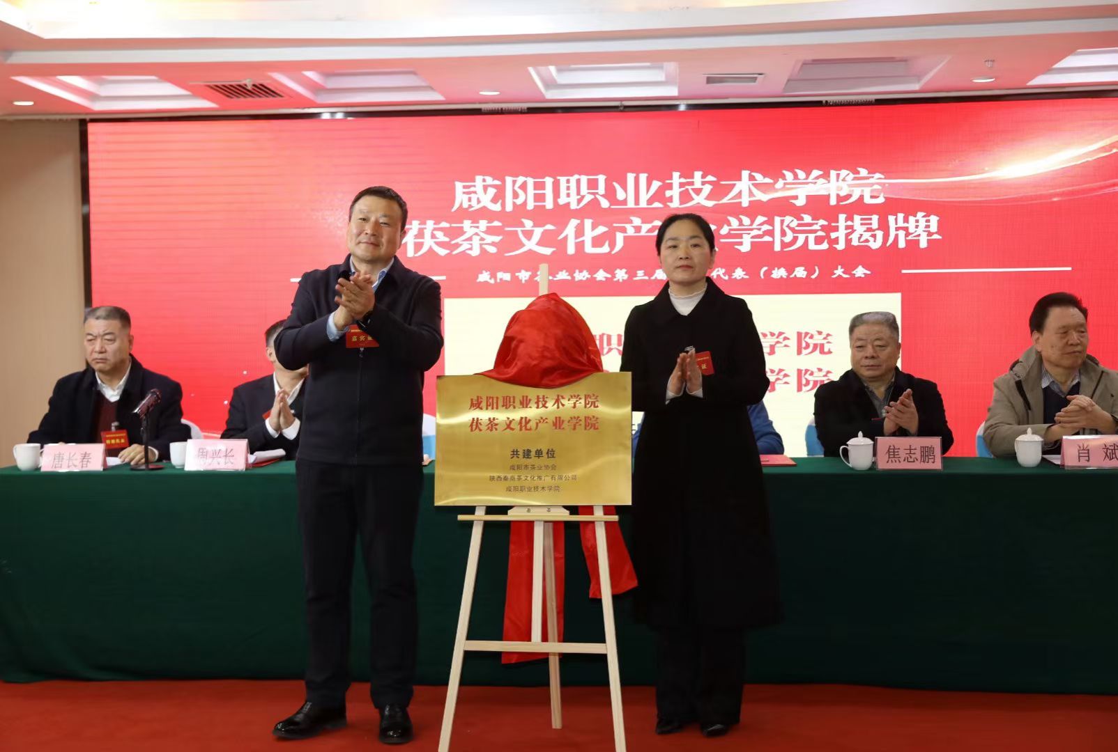12月4日至5日,咸阳市茶业协会第三届会员代表(换届)大会召开。中国茶叶流通协会荣誉会长李三原等参加,中国茶叶流通协会副监事长申卫伟致贺辞,市人大常委会副主任焦志鹏为茶业协会顾问颁发聘书,副市长程文杰讲话,市政协副主席、咸阳茯茶产业链链长房晓飞为beat365英国官网网站茯茶文化产业学院揭牌,市供销社党组成员、副主任唐长春出席会议并讲话。咸阳职院副院长吴旭锦及就业与校企合作处处长高鹏、财经学院党政负责人参加揭牌仪式。