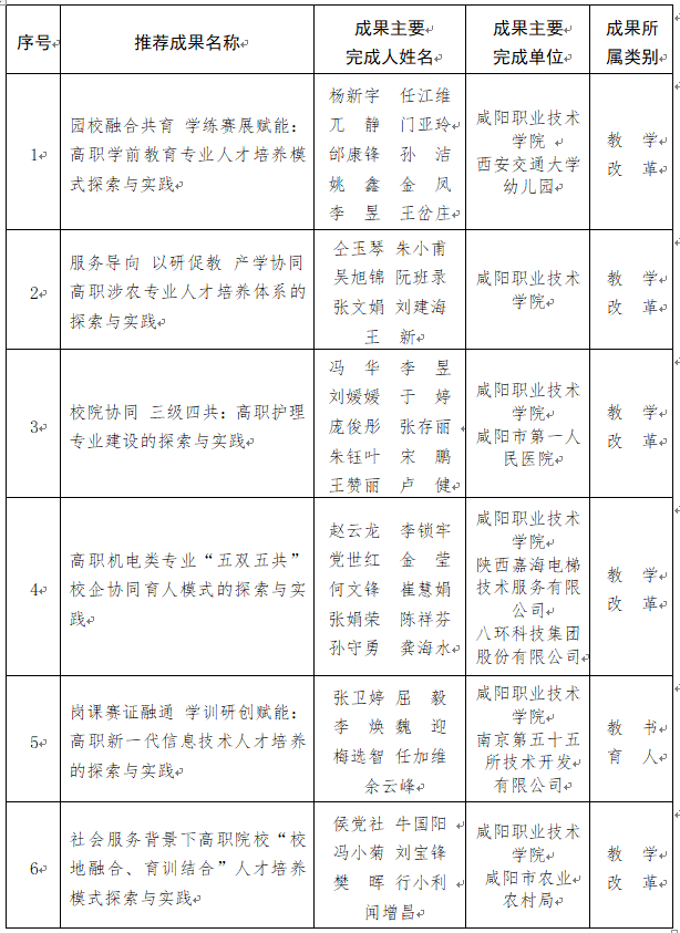 根据《陕西省教育厅 陕西省人力资源和社会保障厅关于开展2021年高等教育教学成果奖评审工作的通知》(陕教〔2021〕165号)精神,2021年11月8日,专家组对beat365申报省级教学成果奖的成果进行了评审鉴定,经学院研究,确定beat3652021年省级教学成果奖推荐申报项目有6个(见文后附表)。现予公示,公示期11月10日—11月15日,如有意见,请反映至教务处教学科(院务楼407室),联系电话33680034。
