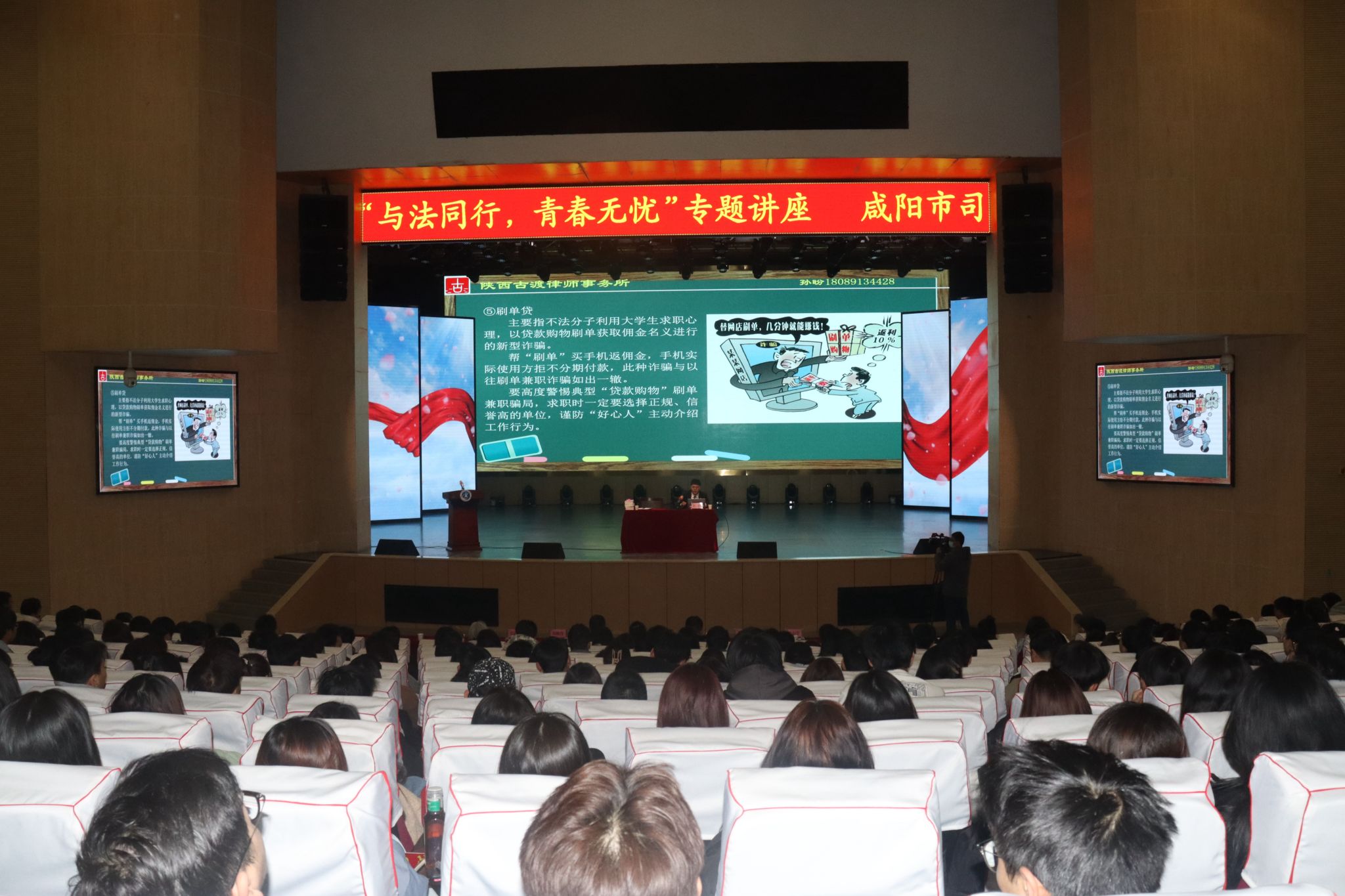 2月28日,咸阳职院信息工程学院举办“与法同行,青春无忧”大学生权益保障法律知识活动报告会。咸阳市司法局党组成员、副局长孙静,咸阳市律师协会会长张巍宇,咸阳律师行业党委委员、陕西古渡律师事务所主任孙喜民,学生处处长高鹏,保卫处副处长侯建龙等应邀参加,信息工程学院党总支书记李春民主持报告会。信息工程学院全体学工干部和400余名学生参加活动。