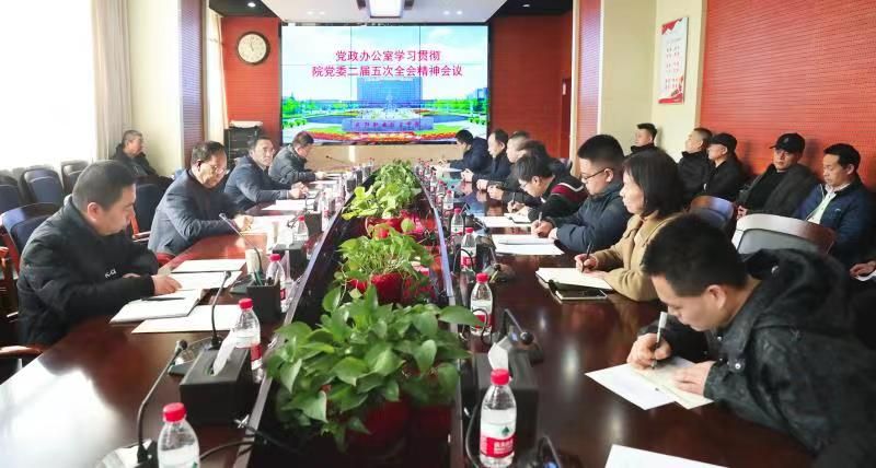 2月14日上午,党政办公室召开专题会议,学习贯彻学院党委二届五次全委(扩大)会精神。学院党委副书记、工会主席赵维,党政办全体教职工参加会议。