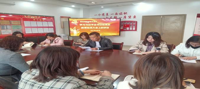 4月7日下午,基础部党总支召开全体党员会议,学习习近平总书记在党史学习教育动员大会上的讲话,基础部党总支书记宁海成主持会议。