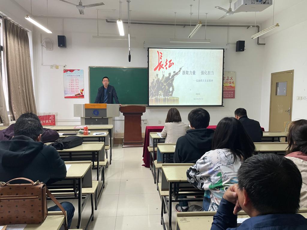 李春民以《汲取力量强化担当——弘扬伟大长征精神》为主题,与大家回顾了红军为什么要长征、中央红军长征途中发生的重大事件、中国工农红军长征著名的四次会师、中央红军到达陕北后开始东征和西征等历史事件,分析了长征最终取得胜利的原因,万里长征铸就的伟大的长征精神,阐述了红军长征的艰辛路程、理想信念高于天的革命信仰和意志。