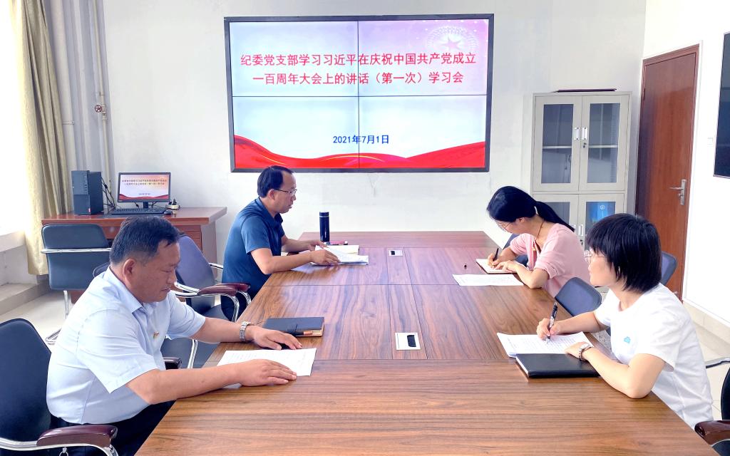 “今天,在中国共产党历史上,在中华民族历史上,都是一个十分重大而庄严的日子。我们在这里隆重集会,同全党全国各族人民一道,庆祝中国共产党成立一百周年,回顾中国共产党百年奋斗的光辉历程,展望中华民族伟大复兴的光明前景……”7月1日下午,纪委党支部组织党员认认真真原原本本的学习了习近平总书记在庆祝中国共产党成立100周年大会上的重要讲话原文,并结党员合各自学习进行了交流发言。