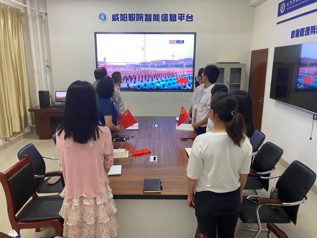 7月1日一大早,实训中心、双高办和纪委的全体党员干部齐聚610会议室,收看大会现场直播,深入学习贯彻习近平总书记重要讲话精神,回顾中国共产党百年历程,见证新中国在中国共产党领导下取得的举世瞩目成就。当庄严的国歌声响起时,全体党员起立同唱国歌。聆听习近平总书记的重要讲话,大家热血沸腾、激情澎湃,再一次被100年来中国共产党团结带领全国各族人民前赴后继、顽强奋斗、百折不挠的精神所打动,为生活在这样的国家而自豪,甘愿为祖国努力奋斗!