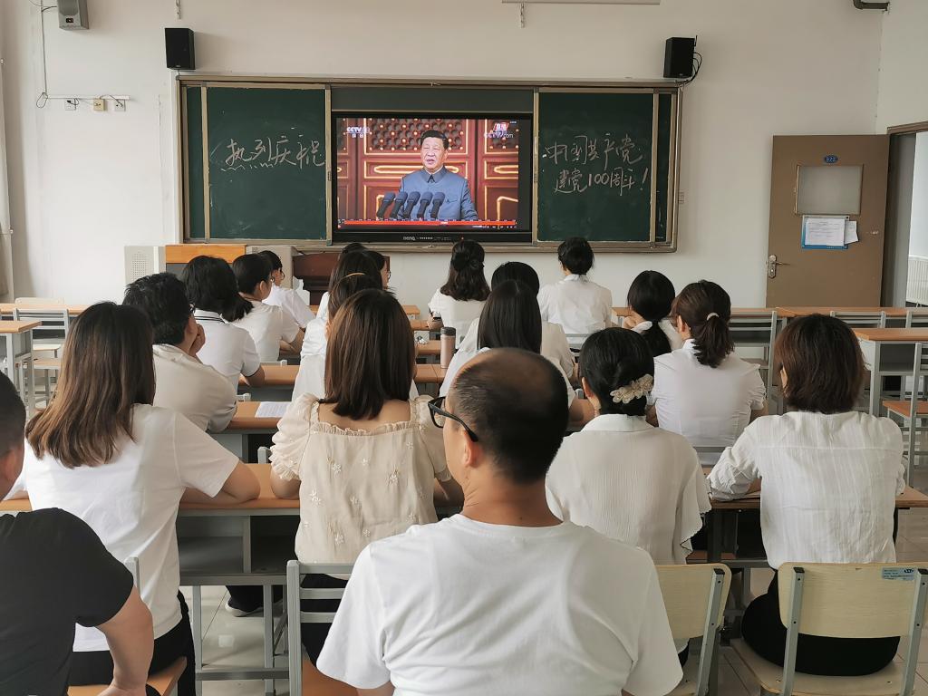 通过观看大会实况直播,全体党员教师共同学习了习近平总书记在大会上的重要讲话,了解了党的百年历史,学习了伟大的建党精神,进一步激发了大家铸忠诚、守初心、担使命的奋进动力。党员同志纷纷表示,继续加强党史学习教育,坚定跟党走、听党话的红色信念,牢记为人民谋幸福,为中华民族谋复兴的初心,担负起为党育人、为国育才的使命,力争创造出教育新业绩。