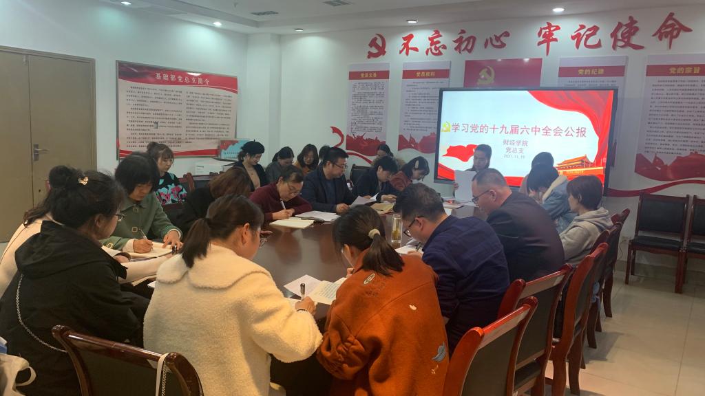 11月19日下午,财经学院党总支召开党的十九届六中全会精神专题学习会,学院副院长杨新宇出席会议,财经学院全体教职工党员参加。会议由财经学院党总支书记肖渭主持。