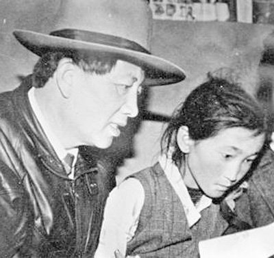 在西藏工作期间,孔繁森(左)在辅导藏族儿童读书。